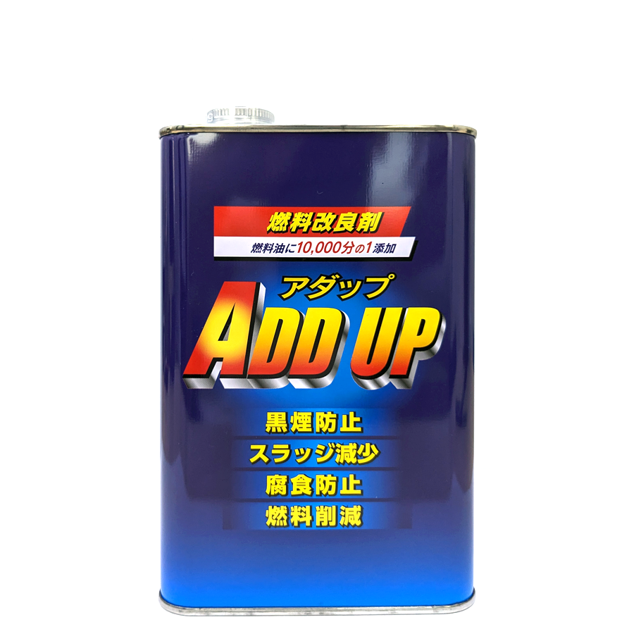 燃料改良剤「ADD UP(アダップ)」は、酵素の働きで燃料油を改質し完全燃焼を促進させます。燃費向上の他、黒煙防止、燃料堆積スラッジの減少による機器寿命の延長等、様々な効果があります。