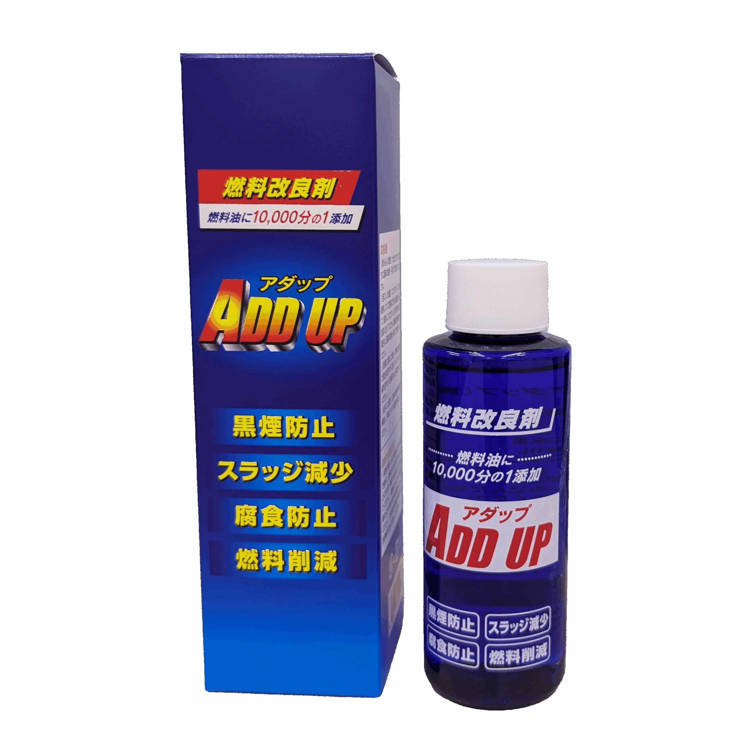 燃料改良剤「ADD UP(アダップ)」は、酵素の働きで燃料油を改質し完全燃焼を促進させます。燃費向上の他、黒煙防止、燃料堆積スラッジの減少による機器寿命の延長等、様々な効果があります。
